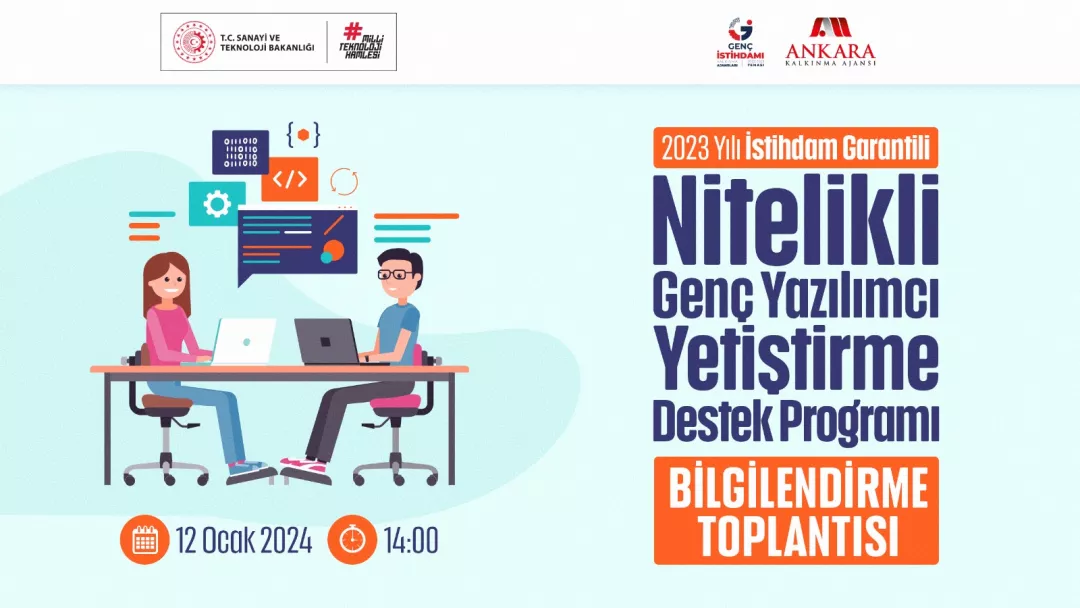 Ankara Kalkınma Ajansı, 2023 Yılı İstihdam Garantili Nitelikli Genç Yazılımcı Yetiştirme Destek Programı (GENÇİS) Bilgilendirme Toplantısı 12 Ocak 2024 Cuma günü saat 14:00’da çevrim içi olarak düzenlenecektir.