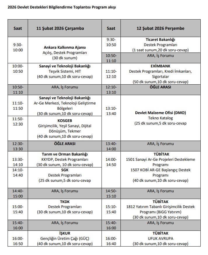 Devlet Destekleri Bilgilendirme Toplantısı’nın Ankara Kalkınma Ajansı ile Ostim OSB Bölge Müdürlüğü ve Ostim Teknik Üniversitesi işbirliğinde 11-12 Şubat 2026 tarihlerinde, Ankara Ostim OSB Bölge Müdürlüğü Konferans Salonunda gerçekleşmesi planlanmaktadır.