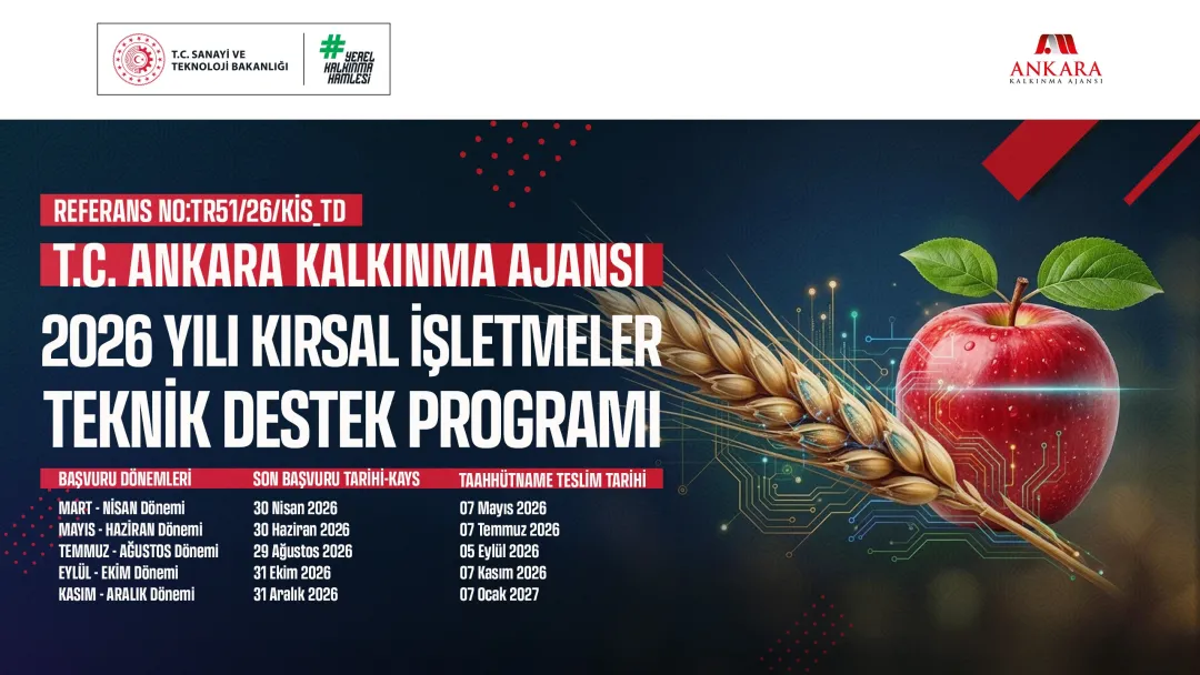 Ankara Kalkınma Ajansının 2026 Yılı Kırsal İşletmeler Teknik Destek Programı başlıyor. Toplam bütçesi 10 Milyon TL olan program yıl sonuna kadar açık kalacak.