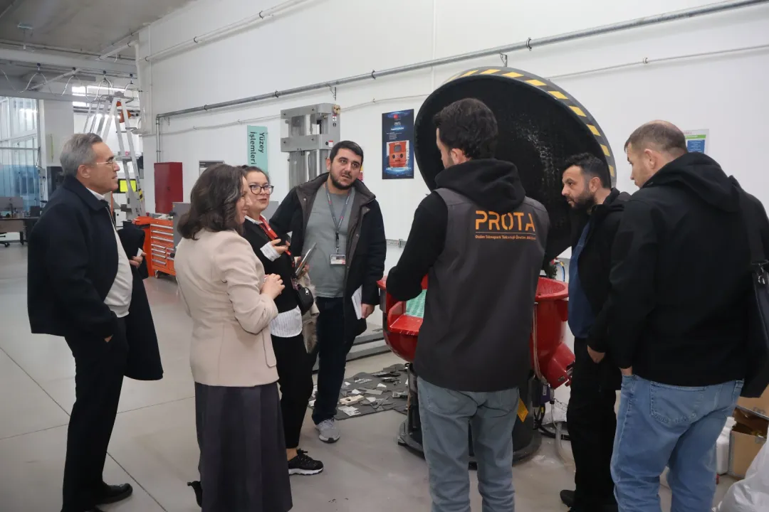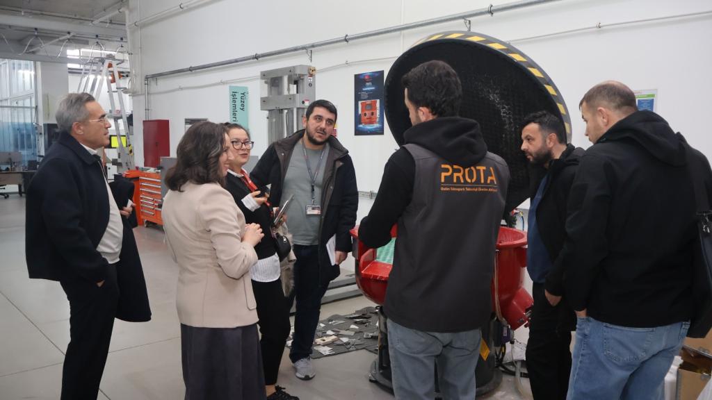Programın son bölümünde, PROTA Teknoloji Üretim Atölyesi’ne yönelik tanıtım, OSTİM Teknopark Genel Müdürü Dr. Derya Çağlar tarafından gerçekleştirildi. Ardından düzenlenen teknik gezide, prototipleme faaliyetlerinde kullanılan alanlar ziyaret edilerek atölyede yer alan makineler ve teknik altyapı katılımcılara tanıtıldı.