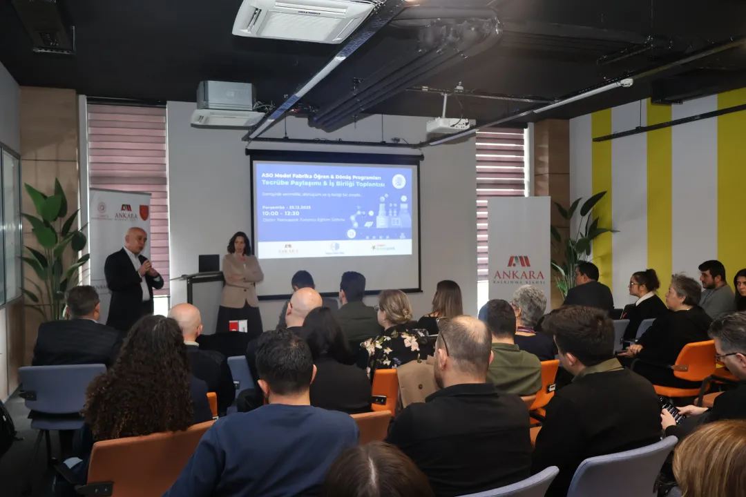 Ankara sanayisinde işletmeler arası iş birliğinin güçlendirilmesi ve dönüşüm odaklı programlara yönelik farkındalığın artırılması amacıyla düzenlenen ASO Model Fabrika Öğren & Dönüş Programları Tecrübe Paylaşımı ve İş Birliği Toplantısı, 25 Aralık 2025 tarihinde OSTİM Teknopark’ta gerçekleştirildi.