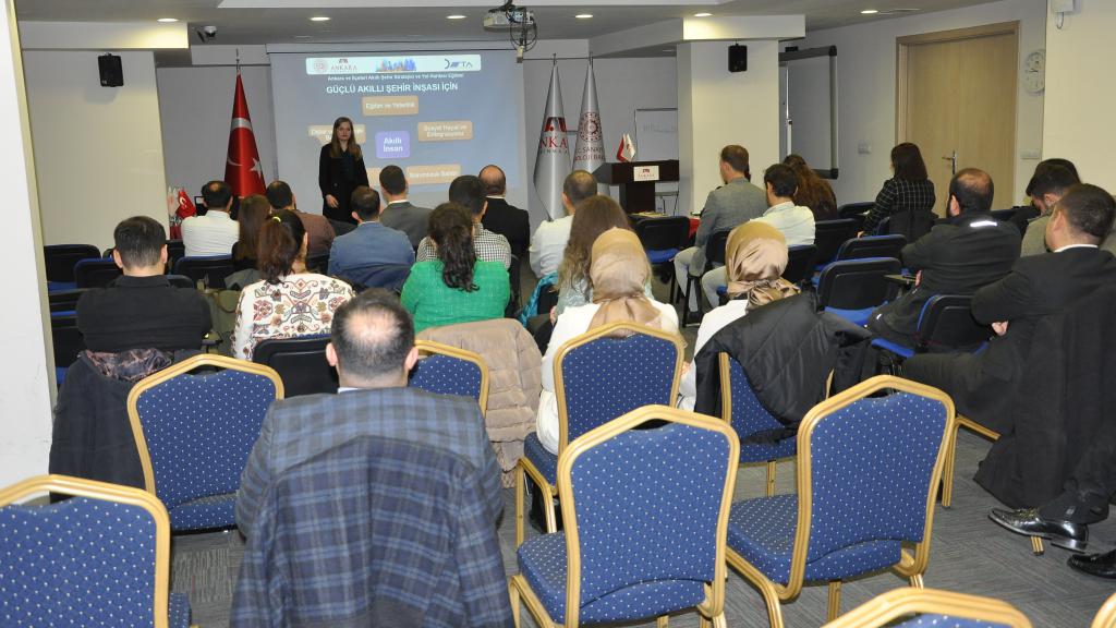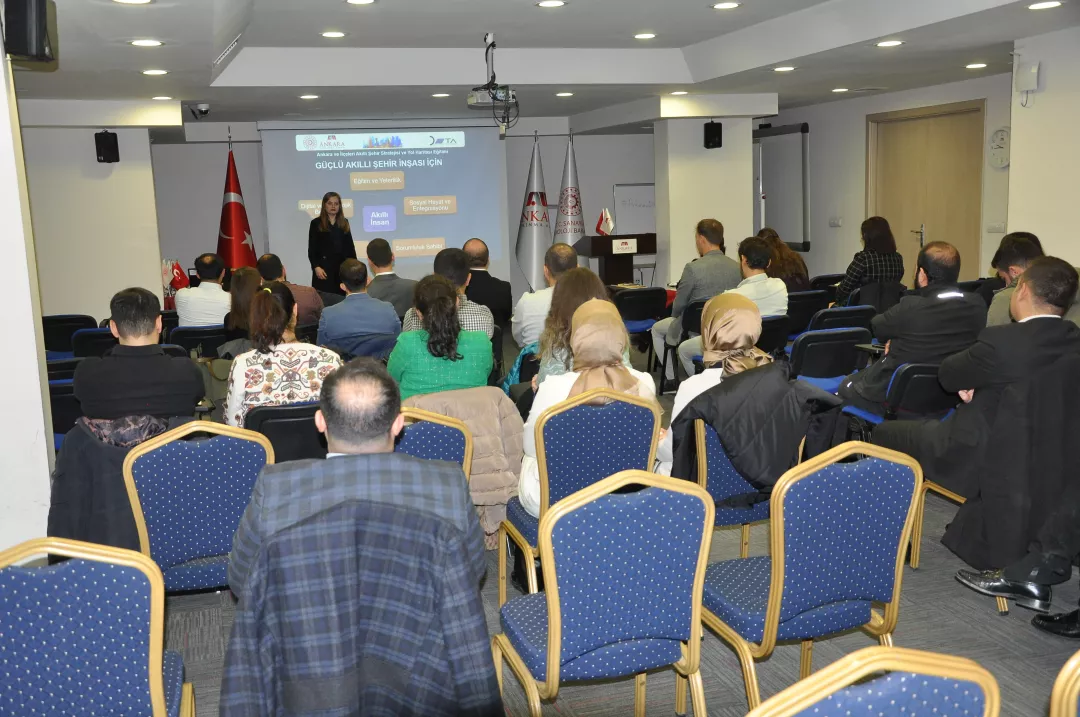 Bu kapsamda Ajansımızda “Akıllı Şehir Stratejisi ve Yol Haritası” hazırlanması konusunda Ankara’daki belediyelerde farkındalık ve bilinç oluşturmak amacıyla bir günlük eğitim programı düzenlenmiştir. Eğitim; “Akıllı Şehir Bileşenleri, Akıllı Şehirlerde İyi Uygulamalar (Akıllı Kentler, Akıllı Yönetişim, Akıllı Ulaşım, Kentsel Hareketlilik, Yenilenebilir Enerji, Akıllı Çevre, Akıllı Teknoloji vb), Yerel Akıllı Şehir Stratejisi ve Yol Haritası Nasıl Hazırlanır?” konu başlıklarından oluşmuştur. Belediyelerin kendi yerel öncelik, ihtiyaç ve akıllı şehir olgunluk seviyelerine göre belirleyecekleri stratejiler çerçevesinde yol haritası oluşturulması gereğinin vurgulandığı eğitim, soru-cevap ve değerlendirme bölümüyle sona ermiştir.