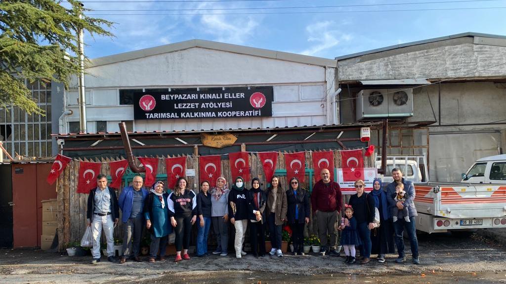 Ziyaretin Beypazarı ayağında ilk olarak “Anadolu Açık Hava Müzesi Projesi” ziyaret edilmiştir. Proje sayesinde geleneksel mimari ve kültür hakkında derleme çalışmaları yapılmış, müze olarak kullanılmak üzere Türkiye’deki farklı yörelerin mimarisine sahip 2 adet evin inşasına destek sağlanmıştır. Beypazarı’nda ikinci olarak S.S.Beypazarı Kınalı Eller Lezzet Atölyesi Tarımsal Kalkınma Kooperatifi tarafından yürütülmüş olan “Beypazarı Kırsalında Üretilen Gıda Ürünlerinin Yenilikçi ve Sürdürülebilir Üretimin Geliştirilmesi Projesi” ziyaret edilmiştir. Proje kapsamında özellikle ihracata yönelik vegan ve glütensiz ürünlerden oluşan yeni bir ürün serisinin üretilmesini hedeflemiştir. Bu kapsamda kooperatifin yenilikçi ürün üretme kapasitesinin geliştirilmesine, kadınlar için istihdam ve gelir olanakları yaratılmasına katkı sağlanmıştır. Beypazarı ilçesinde son olarak 2021 Yılı Kırsal Kalkınma Mali Destek Programı kapsamında desteklenen “Geleneksel Beypazarı Kurusu Yeni Teknolojilerle Dünya Sahnesinde Projesi” ziyaret edilmiştir. Proje kapsamında Beypazarı kurusunun geleneksel özelliklerini koruyarak üretim kapasitesinin arttırılmasına yönelik makine alımı gerçekleşmiş ve üretimde kısmi otomasyona geçilmiştir.