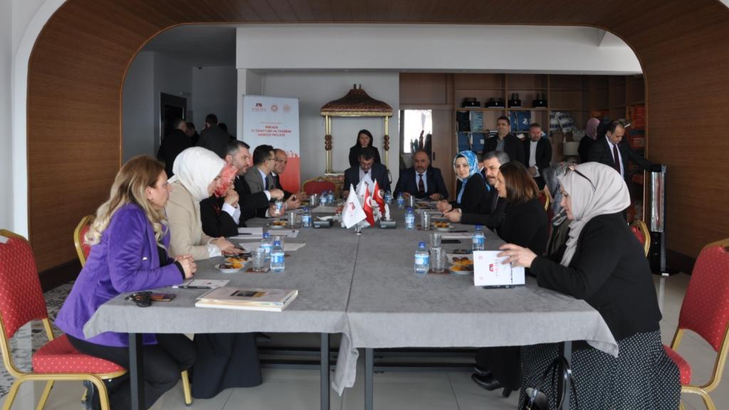 Ankara Kalkınma Ajansı tarafından desteklenen ve geleneksel el sanatlarının izlerini taşıyan projeler üst düzey bürokratlar tarafından yerinde incelendi. Sanayi ve Teknoloji Bakan Yardımcısı Sayın Oruç Baba İNAN, Milli Eğitim Bakan Yardımcısı Sayın Celile Eren ÖKTEN, Ankara Milletvekili Sayın Zeynep YILDIZ, Sanayi ve Teknoloji Bakanlığı Kalkınma Ajansları Genel Müdürü Sayın Ahmet ŞİMŞEK, Ankara Kalkınma Ajansı Genel Sekreter V. Sayın Emine DOĞRUKÖK ile Ajans ve ilçe halk eğitim merkezi yetkililerinin yer aldığı heyet; 21 Şubat tarihinde Altındağ ilçesinde yürütülen iki projede incelemelerde bulundu. Heyet ilk olarak “Geleneksel Ayakkabıcılık Zanaatı ile Kadın İstihdamının Desteklenmesi İçin Eğiticilerin Eğitimi Projesi” atölyesini ve satış ofisini ziyaret etti. Yemenia Kadın Girişimi Üretim ve İşletme Kooperatifi tarafından yürütülen proje geleneksel el sanatlarının günümüze taşınması ve kadın istihdamının artırılması ile dikkat çekiyor. Üretim atölyesinde incelemelerde bulunan heyet, kadın girişimcilerden sürece ilişkin detaylı bilgi aldı. Görüşmelerde halk eğitim merkezleri ile iş birlikleri ve geleneksel el sanatlarının yenilikçi tasarım ve uygulamalarla yaşatılmasına yönelik tedbirler ele alındı. SOF Tarihi Değeriyle Yeniden Gündemde Programın sonraki bölümünde “Tiftik ve Sof Paydaş Toplantısı” gerçekleştirildi. İz Ankara Sanat Merkezinde yapılan toplantıda tarihi Sof Kumaşı’nın üretimi, yenilikçi yaklaşımlarla tasarlanması ve dünya pazarlarına tekrar sunulması için izlenecek yol haritası ele alındı. Toplantıda Sanayi ve Teknoloji Bakanlığı ile Milli Eğitim Bakanlığı arasında işbirliği ve yürütülecek olası programlar görüşüldü. Toplantının ardından heyet, Ankara Kalkınma Ajansının destekleriyle kurulan İz Ankara Sanat Merkezinde incelemelerde bulundu ve yetkililerden bilgi aldı.