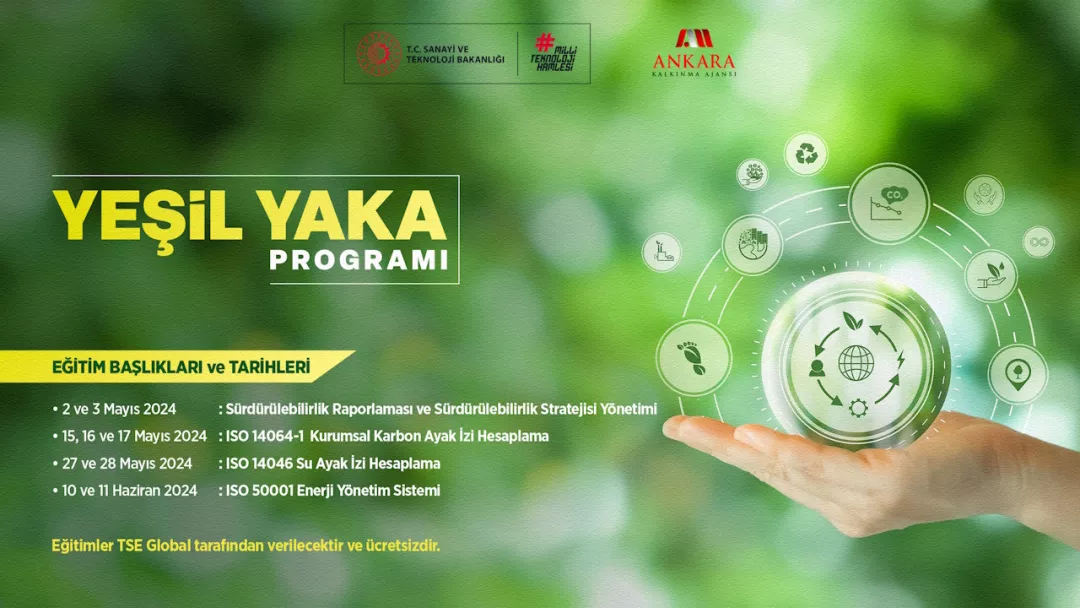 Ankara Kalkınma Ajansı, Yeşil Dönüşüm adaptasyon sürecini desteklemek ve Ankara'nın rekabet edilebilirliğini artırmak amacıyla "Yeşil Yaka Programı"nı düzenlemektedir. Ücretsiz olarak sunulan bu eğitim serisi, katılımcıların Yeşil Dönüşüm konusunda bilgi sahibi olmalarını hedeflemekte ve gittikçe önem kazanan yeşil sektörler odaklı olarak Ankara'nın beşeri sermayesini güçlendirmeyi amaçlamaktadır.