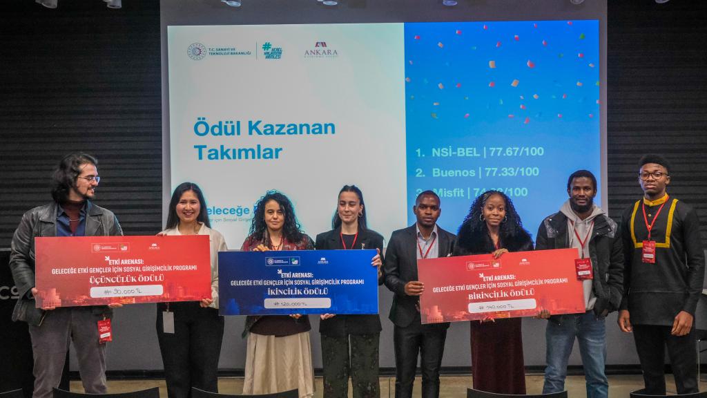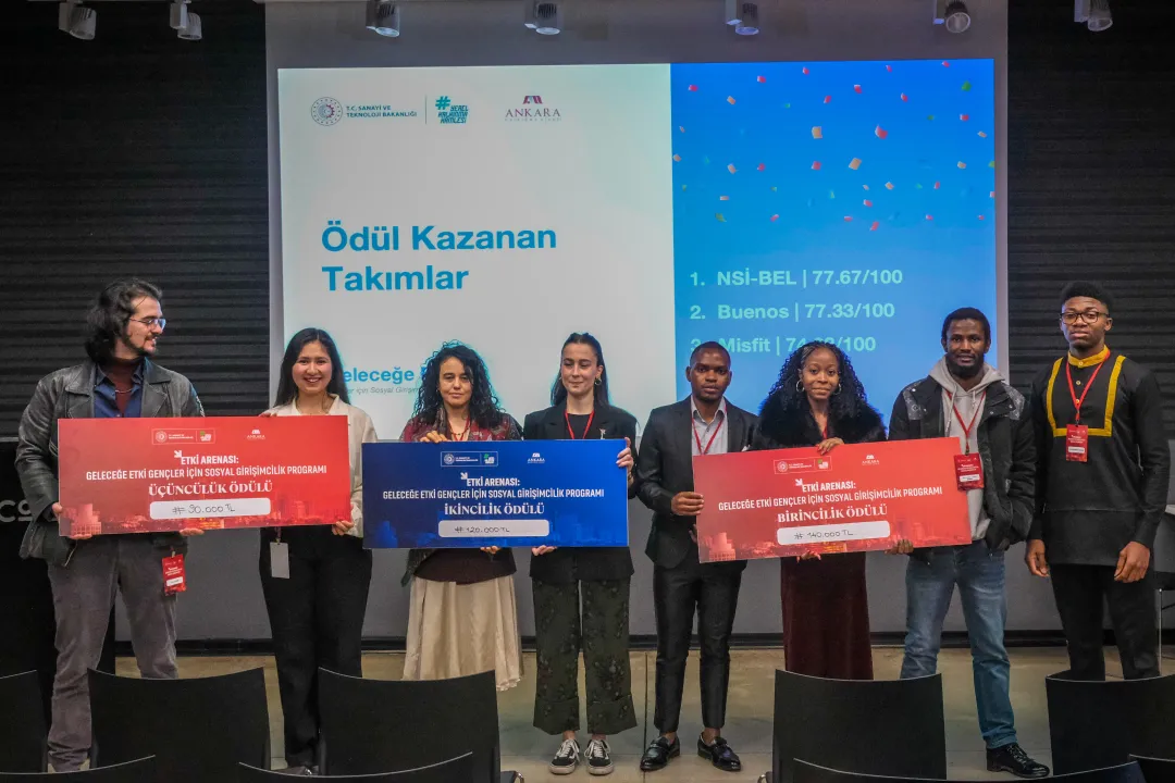Etki Arenası Yarışması’nda dereceye giren takımlar, toplam 350.000 TL para ödülünün yanı sıra, sosyal girişim fikirlerini hayata geçirme sürecinde mentorluk ve danışmanlık desteği ile Impact Hub Ankara üyeliği kazandı.