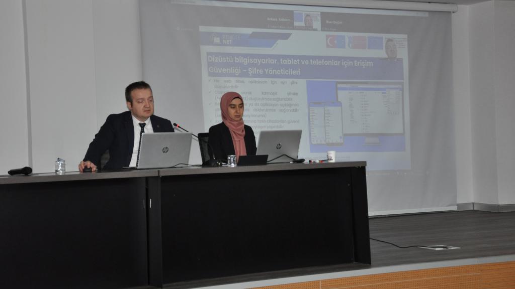 Eğitim programı, proje koordinatörü İstanbul Üniversitesi İktisat Fakültesi Öğretim Üyesi Dr. İlhan Doğan’ın proje genel tanıtımı ve projenin çıktılarından olan Dijital İş İstasyonu sunumu ile başladı. Eğitimin devamında, katılımcılara proje çıktıları olarak üretilen eğitim modüllerinden; Dijital İletişim Becerileri ve Araçları, Dijital – Siber Güvenlik, Toplantı Yazılımları, Dijital İş Birliği Platformları modülleri içeriği ve örnek uygulamalar, Ajansın projede görevli uzmanları tarafından aktarıldı.