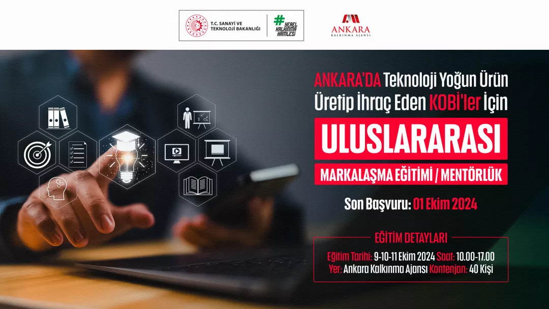 Ankara'da faaliyet gösteren teknoloji yoğun ürün üretimi yapan KOBİ'leri desteklemeye yönelik olarak düzenlenecek Uluslararası Markalaşma Eğitimi ve Mentörlük Programı ücretsiz olarak katılımcılara sunulacaktır. Eğitim programı, katılımcıların markalaşma stratejilerini geliştirme, marka değeri oluşturma, uluslararası pazarlarda başarılı olma ve ihracat süreçlerini yönetme konularında kapsamlı bilgiler edinmelerini hedeflemektedir. Mentörlük ile de eğitimde edinilen bilgiler doğrultusunda KOBİ’lere deneyimli bir bakış açısıyla uzmanlık, profesyonel bilgi ve danışmanlık sağlanacaktır.
