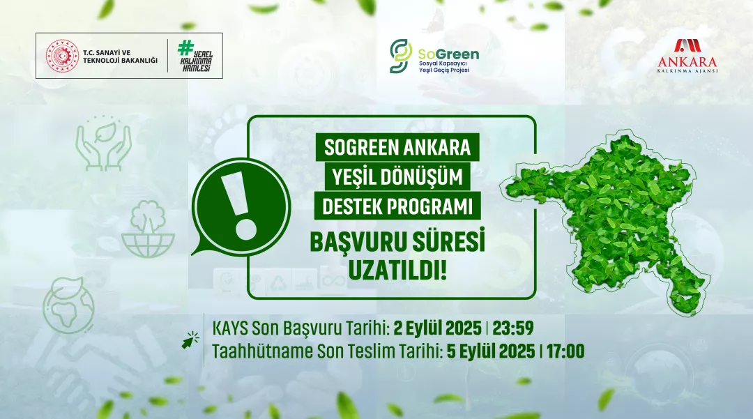 SOGREEN Ankara Yeşil Dönüşüm Destek Programının Başvuru Süresi Uzatılmıştır