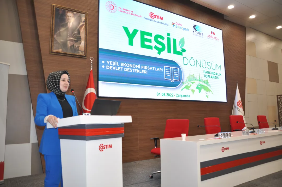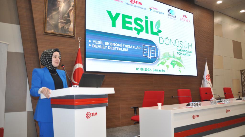 Ankara Kalkınma Ajansı Yeşil Dönüşüm Farkındalık Toplantıları 1 Haziran 2022 tarihinde OSTİM OSB oturumuyla devam etti. Ostim OSB, Ostim Teknopark ve KOSGEB iş birliği ile gerçekleştirilen etkinliğe yoğun bir talep olduğu görüldü. 70 kişinin katılım sağladığı toplantıda Yeşil Dönüşüm alanındaki gelişmeler, sanayicinin bu alana yönelik kendini hazırlaması gereken konular, Ajansın Yeşil Dönüşüm alanında planladığı çalışmalar ve KOSGEB’in konuyla ilgili destekleri tanıtıldı.