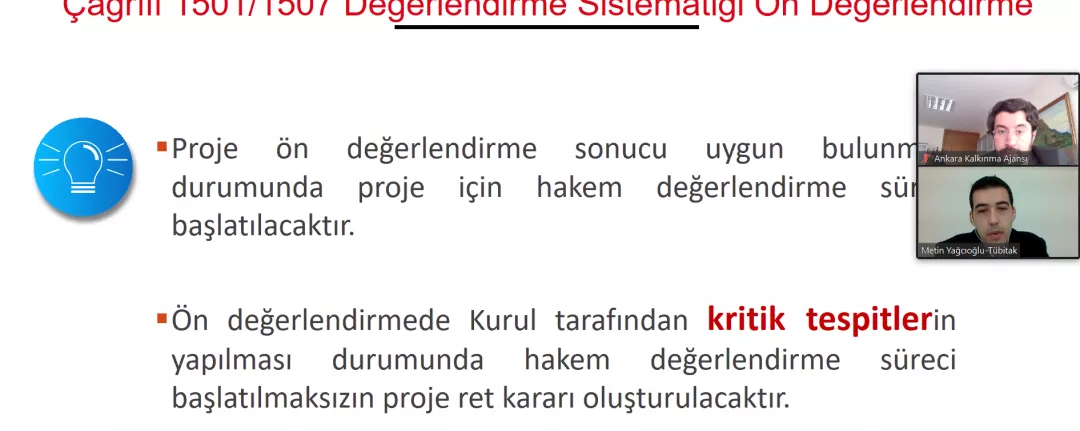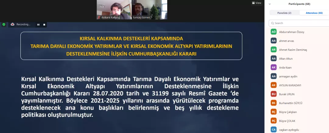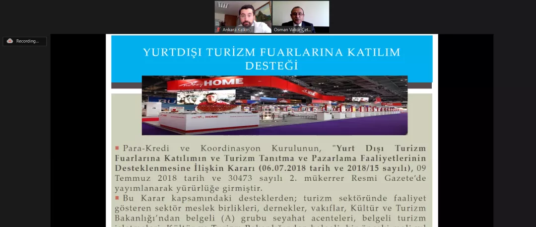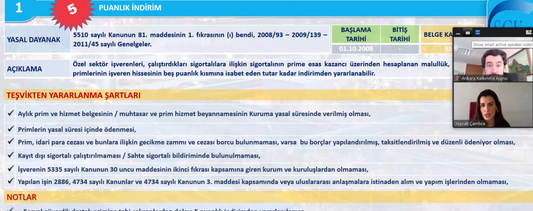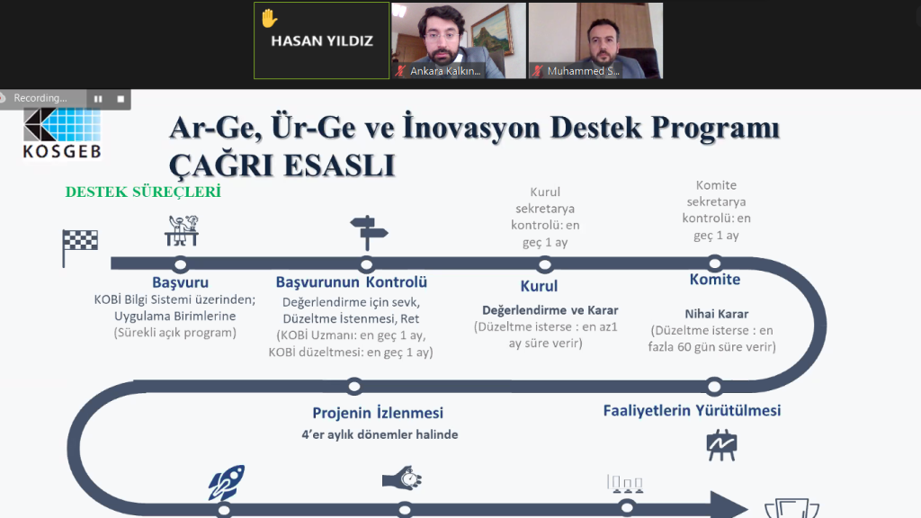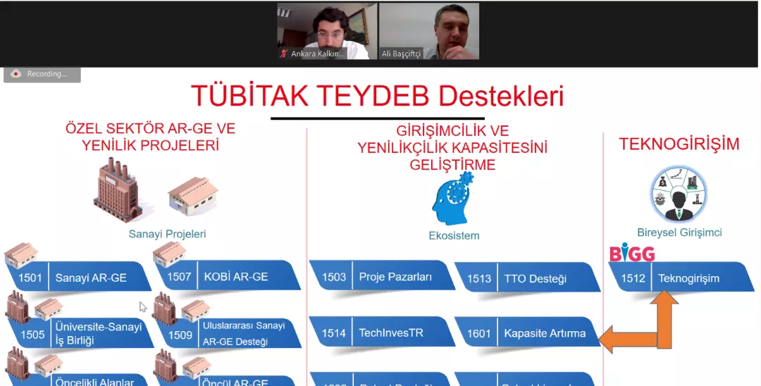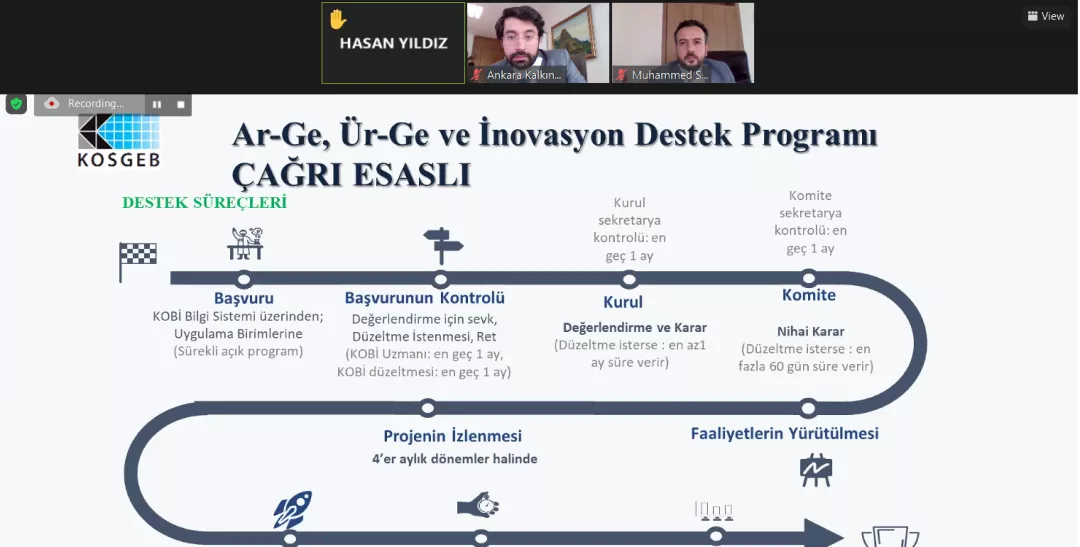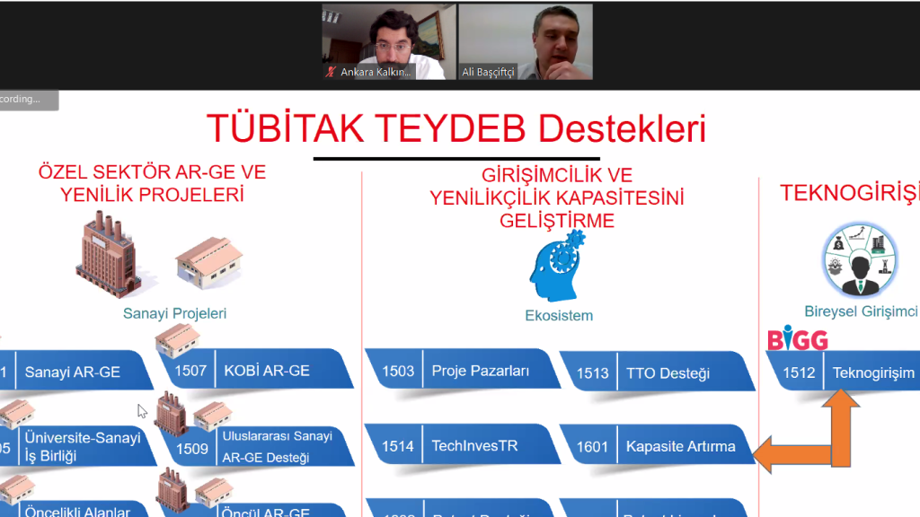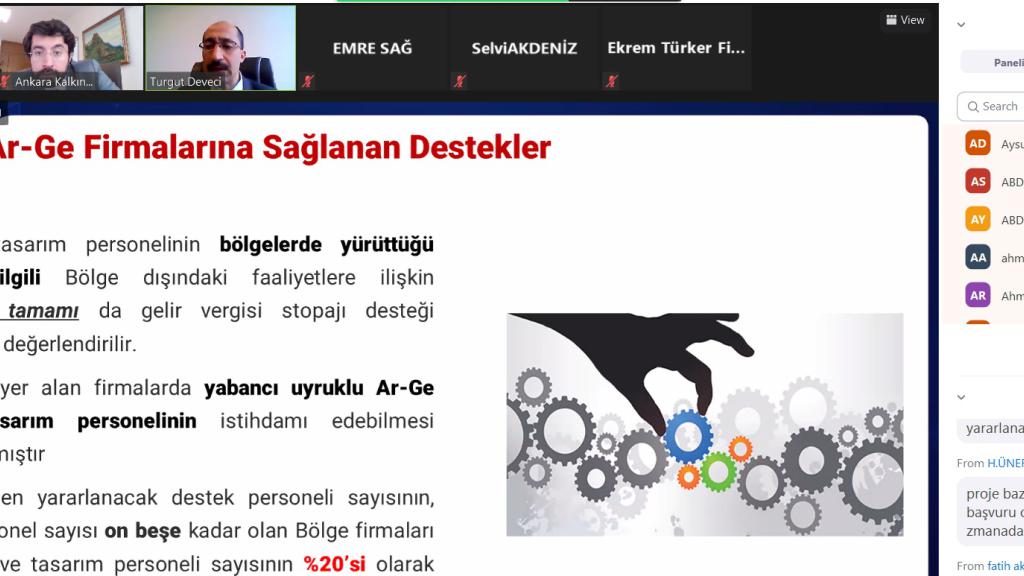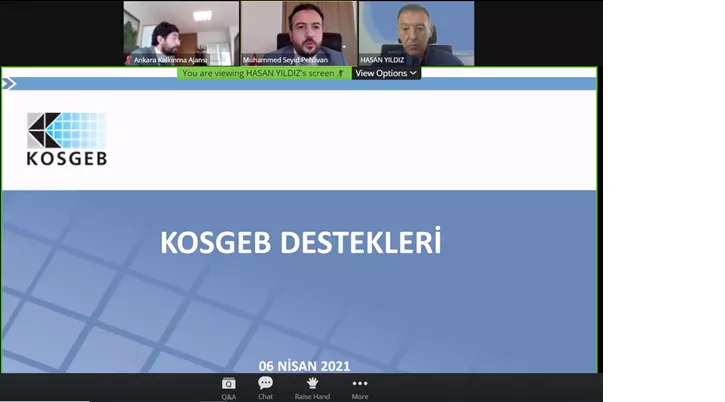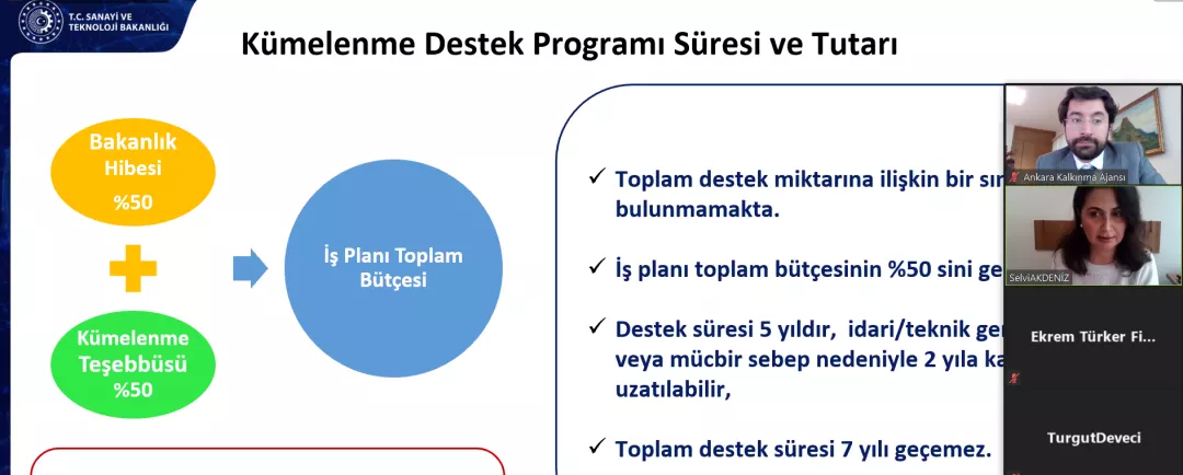 Ankara Kalkınma Ajansı Yatırım Destek Ofisi koordinasyonunda 2013 yılından bu yana her yıl düzenlenmekte olan Devlet Destekleri Bilgilendirme Toplantısı pandemi nedeniyle bu yıl online olarak gerçekleştirildi. 6-8 Nisan 2021 tarihlerinde üç gün boyunca devam eden etkinlik kapsamında, Sanayi ve Teknoloji Bakanlığı, KOSGEB, TKDK, İŞKUR, SGK, TÜBİTAK, Tarım ve Orman Bakanlığı, Kültür ve Turizm Bakanlığı tarafından yürütülen destek programları ve teşvikler hakkındaki sunumlar ilgili kuruluşların temsilcileri tarafından gerçekleştirildi. Toplam 1105 kişinin katıldığı etkinlikte katılımcıların yönelttiği sorular da yanıtlanarak destek ve teşviklerle ilgili en güncel bilgiler paylaşıldı. Etkinlik kapsamında yapılan sunumlar aşağıda yer almaktadır.