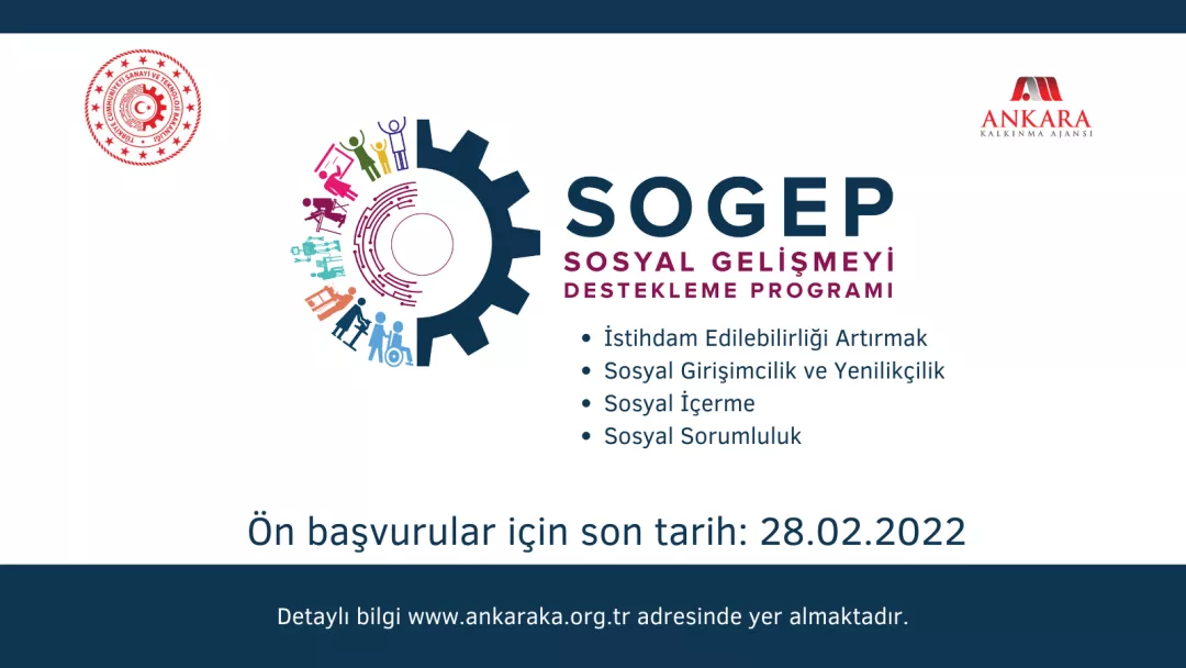 Ankara Kalkınma Ajansı, 2022 yılında Sanayi ve Teknoloji Bakanlığı Kalkınma Ajansları Genel Müdürlüğü tarafından yürütülecek olan Sosyal Gelişmeyi Destekleme Programına (SOGEP) ilişkin proje hazırlık sürecine başlamıştır.