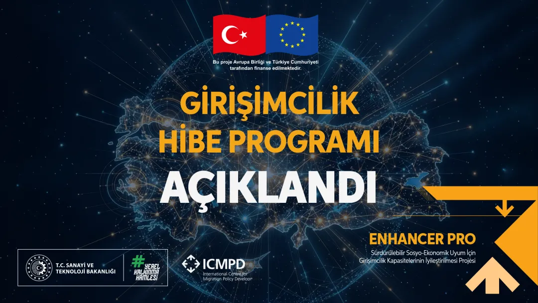 Avrupa Birliği tarafından finanse edilen ve Uluslararası Göç Politikaları Geliştirme Merkezi (ICMPD) tarafından, T.C. Sanayi ve Teknoloji Bakanlığı Kalkınma Ajansları Genel Müdürlüğü iş birliğiyle yürütülen “Sürdürülebilir Sosyo-Ekonomik Uyum İçin Girişimcilik Kapasitelerinin İyileştirilmesi Projesi (ENHANCER PRO)” kapsamında 18 ildeki girişimcilere yönelik “Girişimcilik Hibe Programı” ilan edilmiştir.